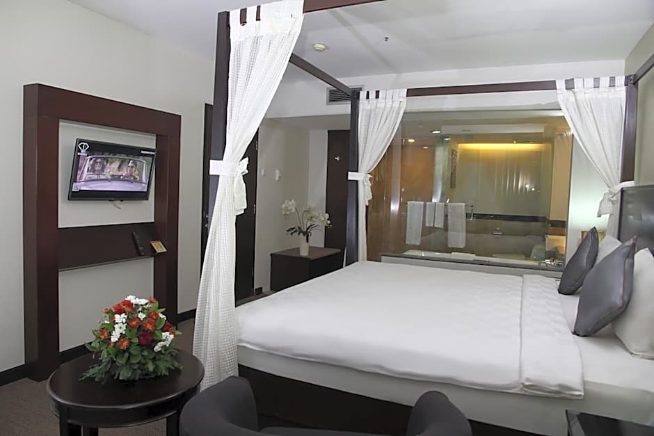 Rooms are slightly larger and offer views of the city.